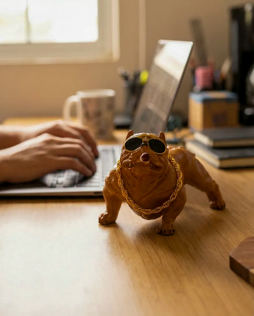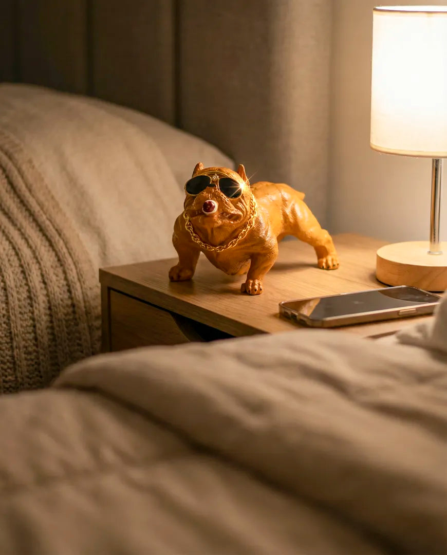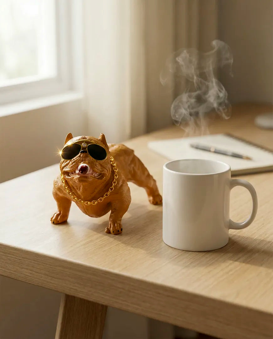 Dale actitud a tu carro o escritorio con este bulldog que no le teme a nada, listo para instalar donde quieras.