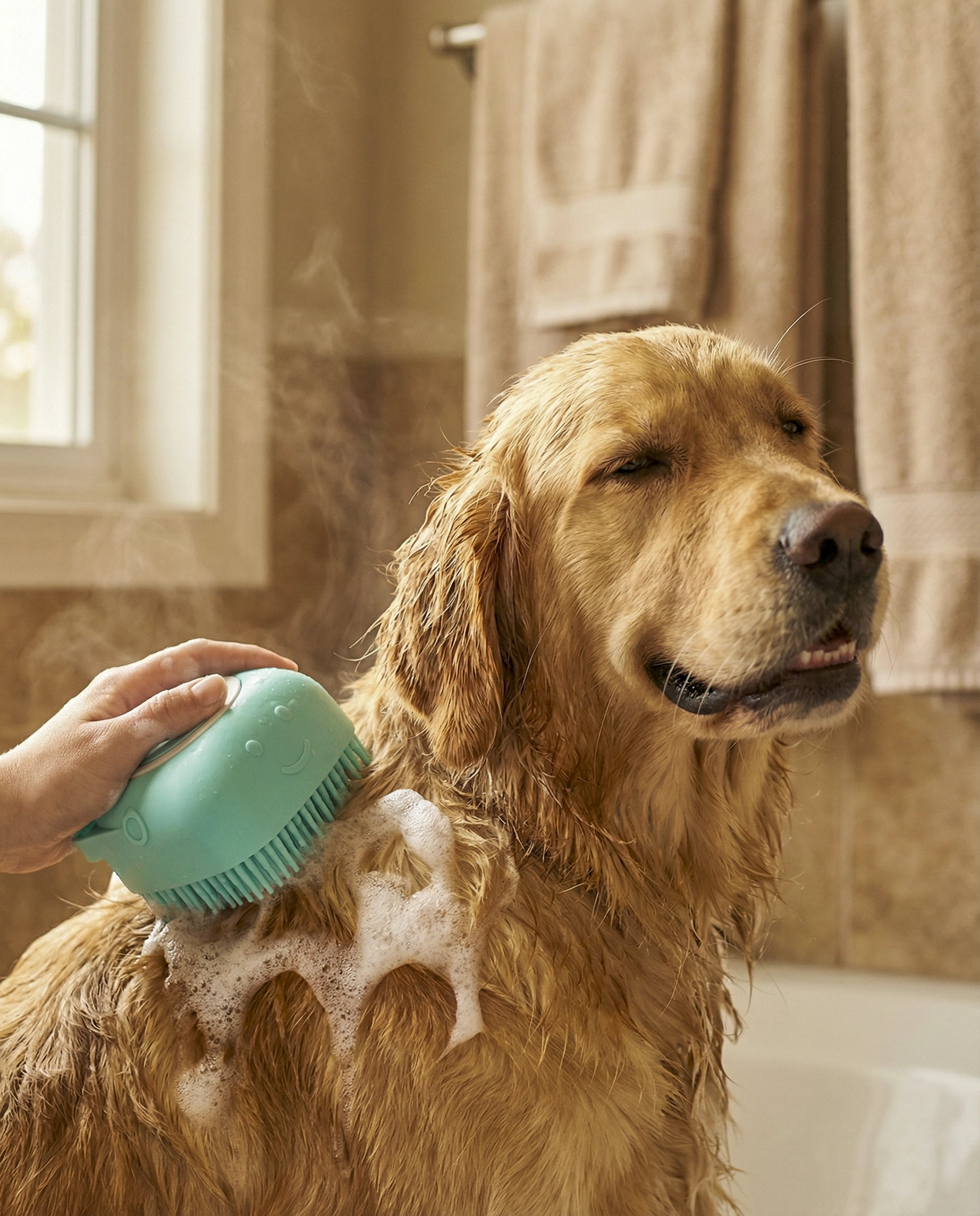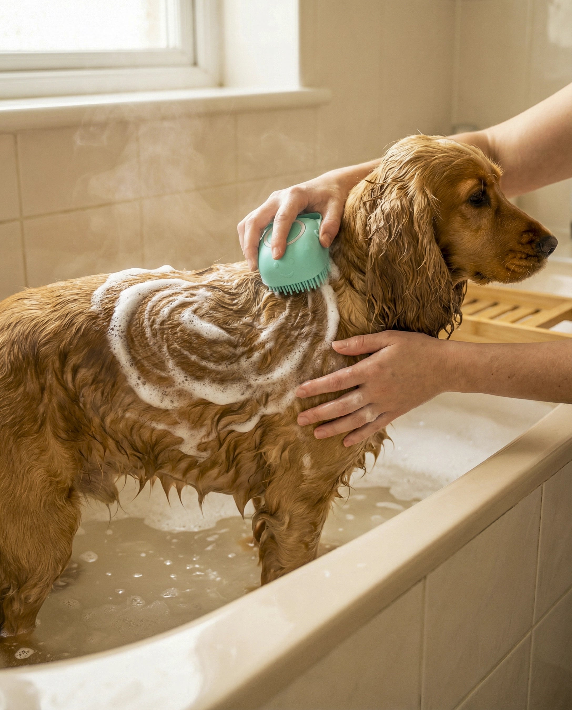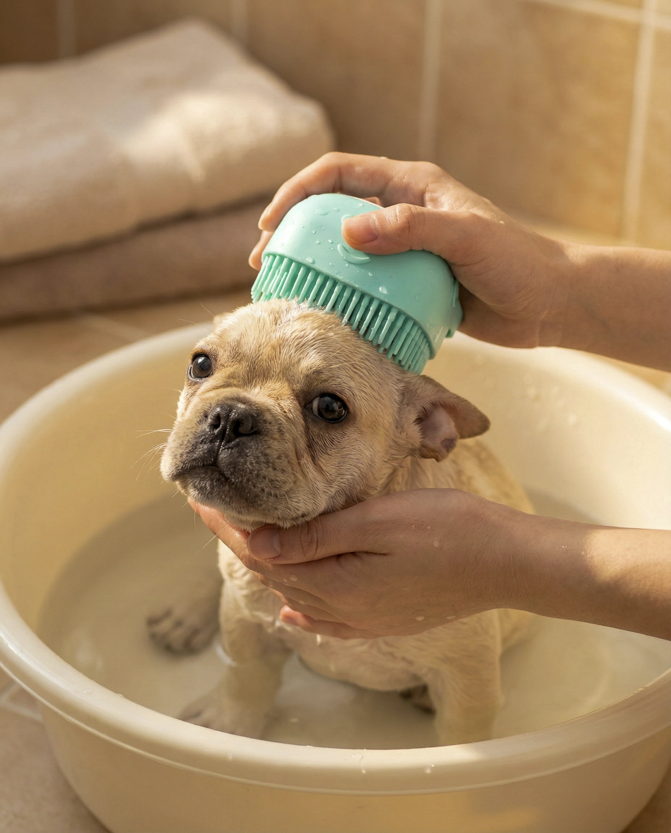Cepillo de silicona con dispensador integrado que libera el shampoo mientras masajeas. Transforma el baño de tu mascota en un momento de spa relaja...
