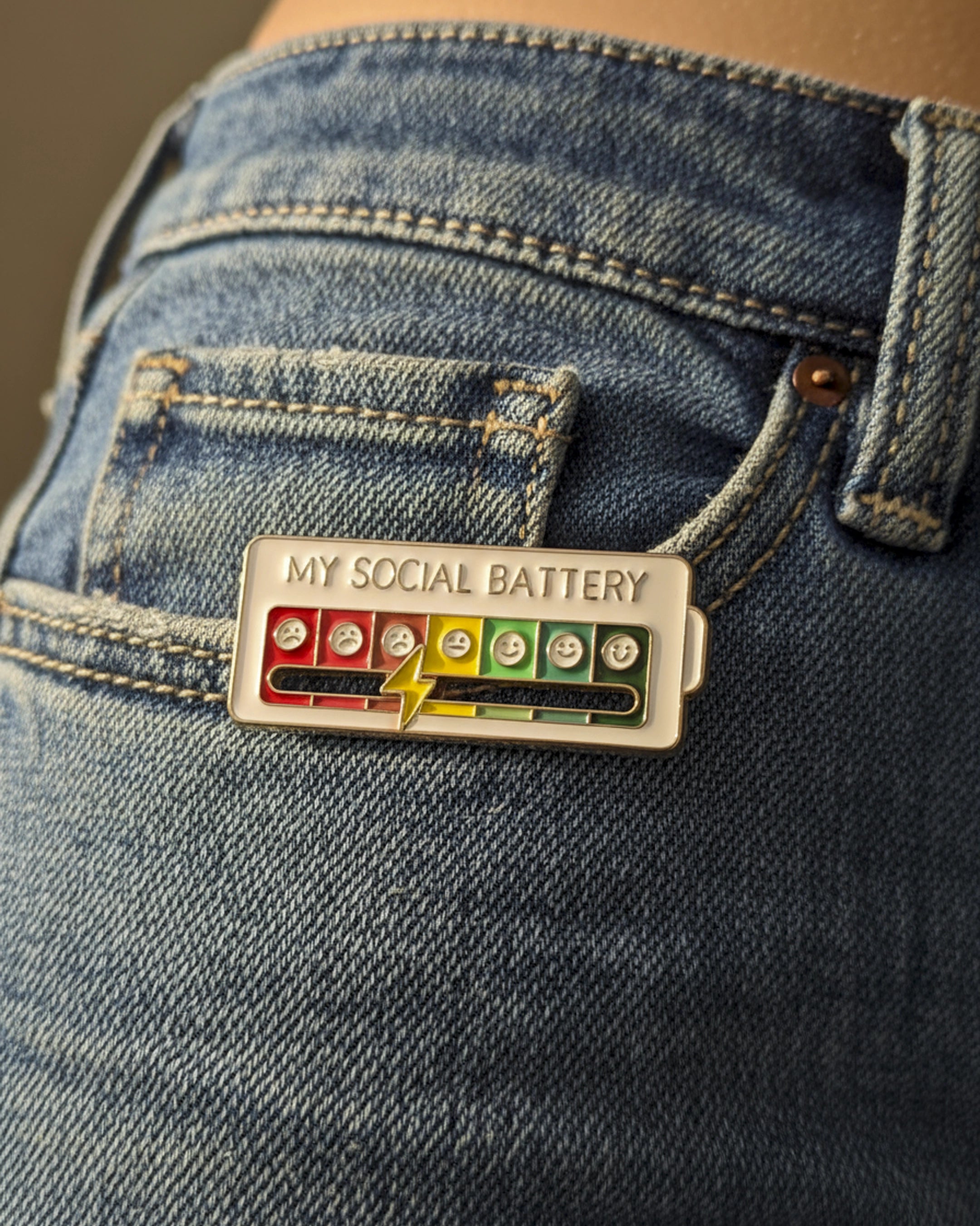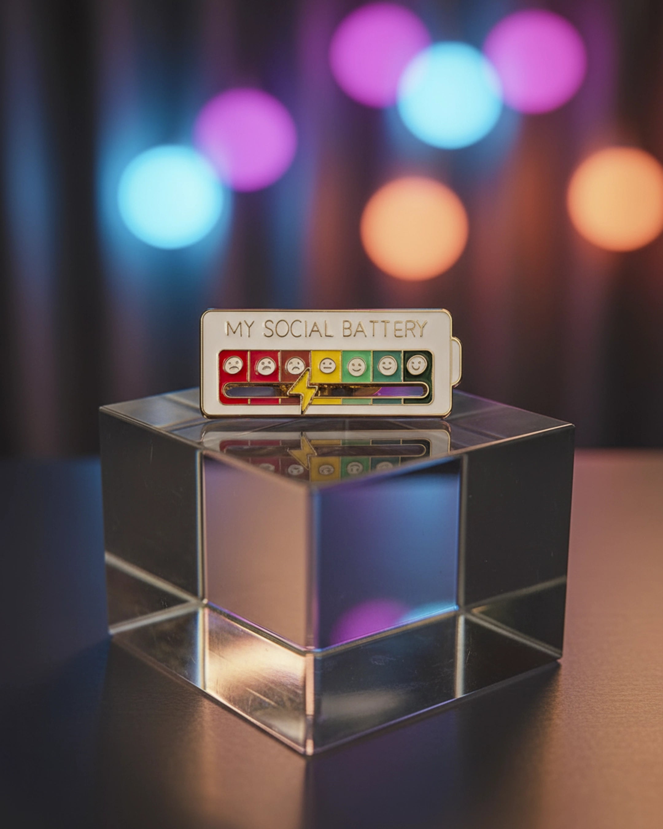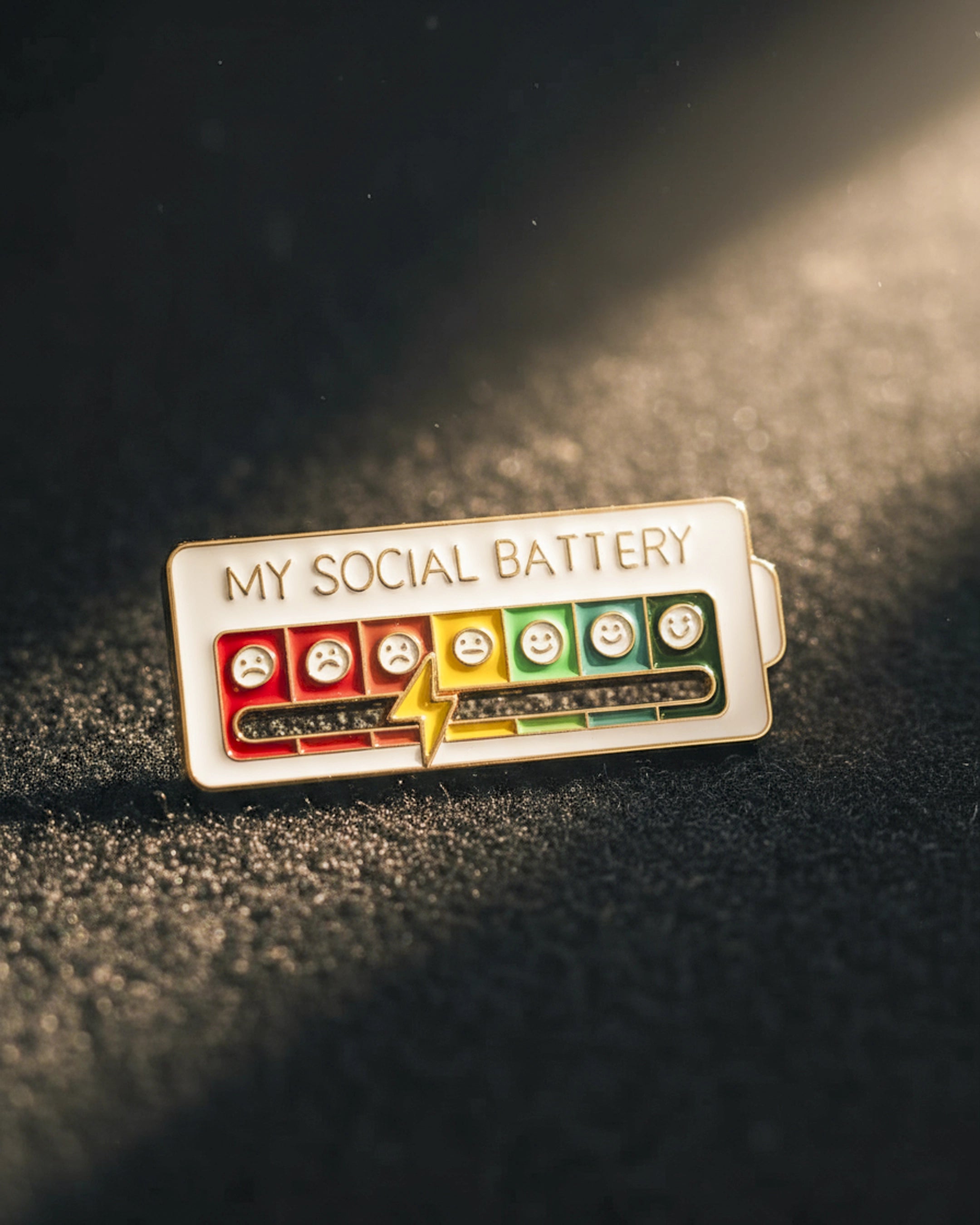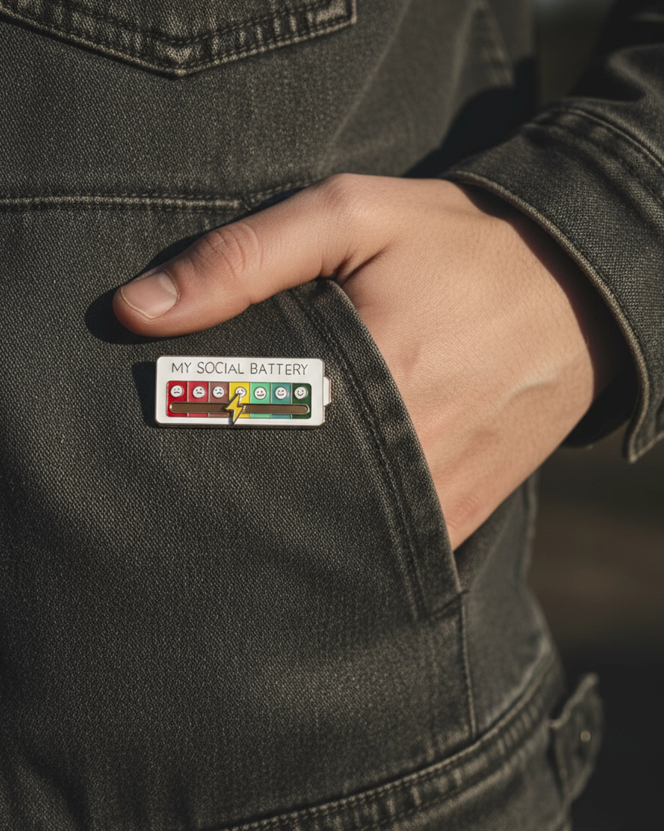 El Pin My Social Battery es una forma ingeniosa y lúdica de comunicar a los demás cómo te sientes en el ámbito social, sin necesidad de palabras.