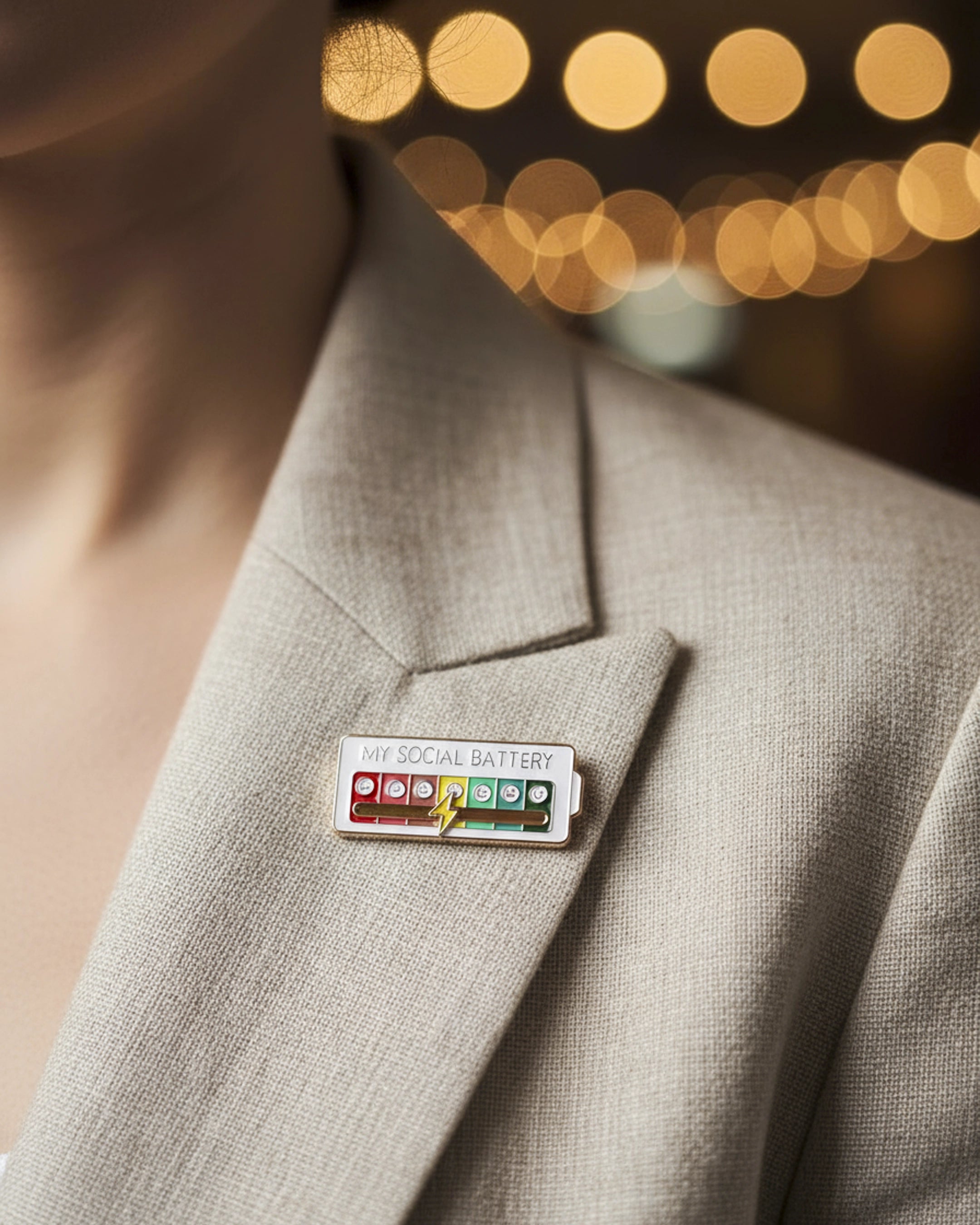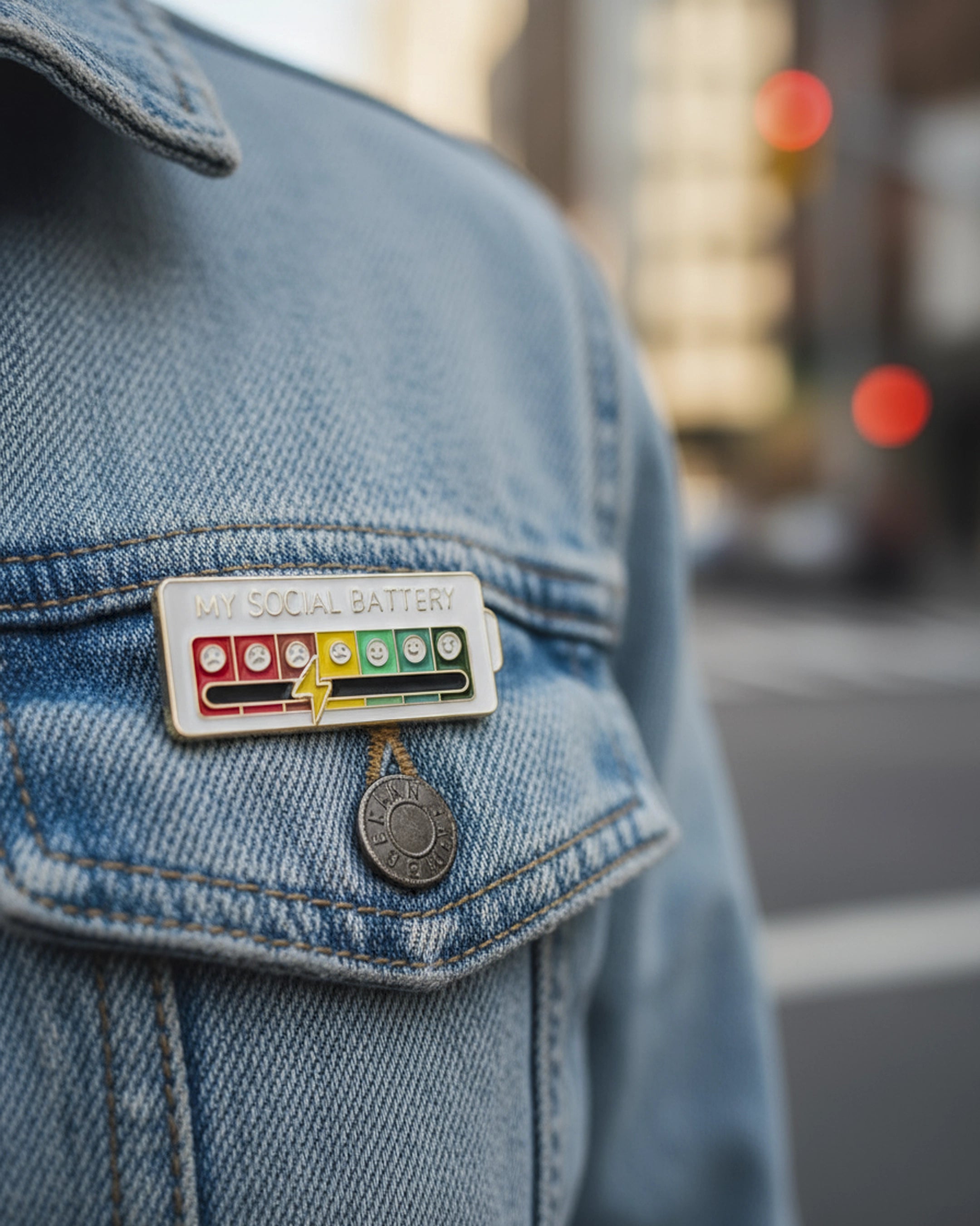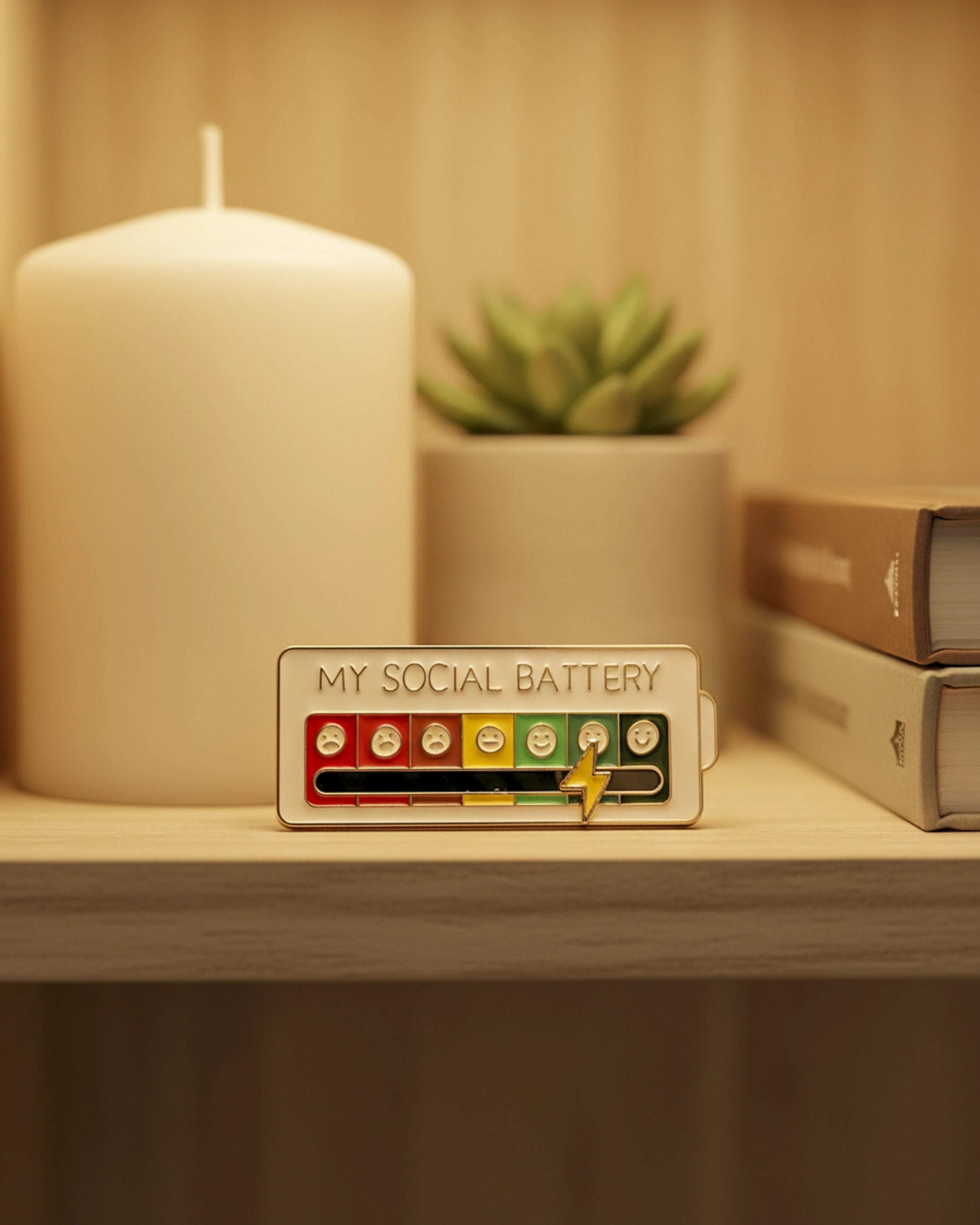El Pin My Social Battery es una forma ingeniosa y lúdica de comunicar a los demás cómo te sientes en el ámbito social, sin necesidad de palabras.