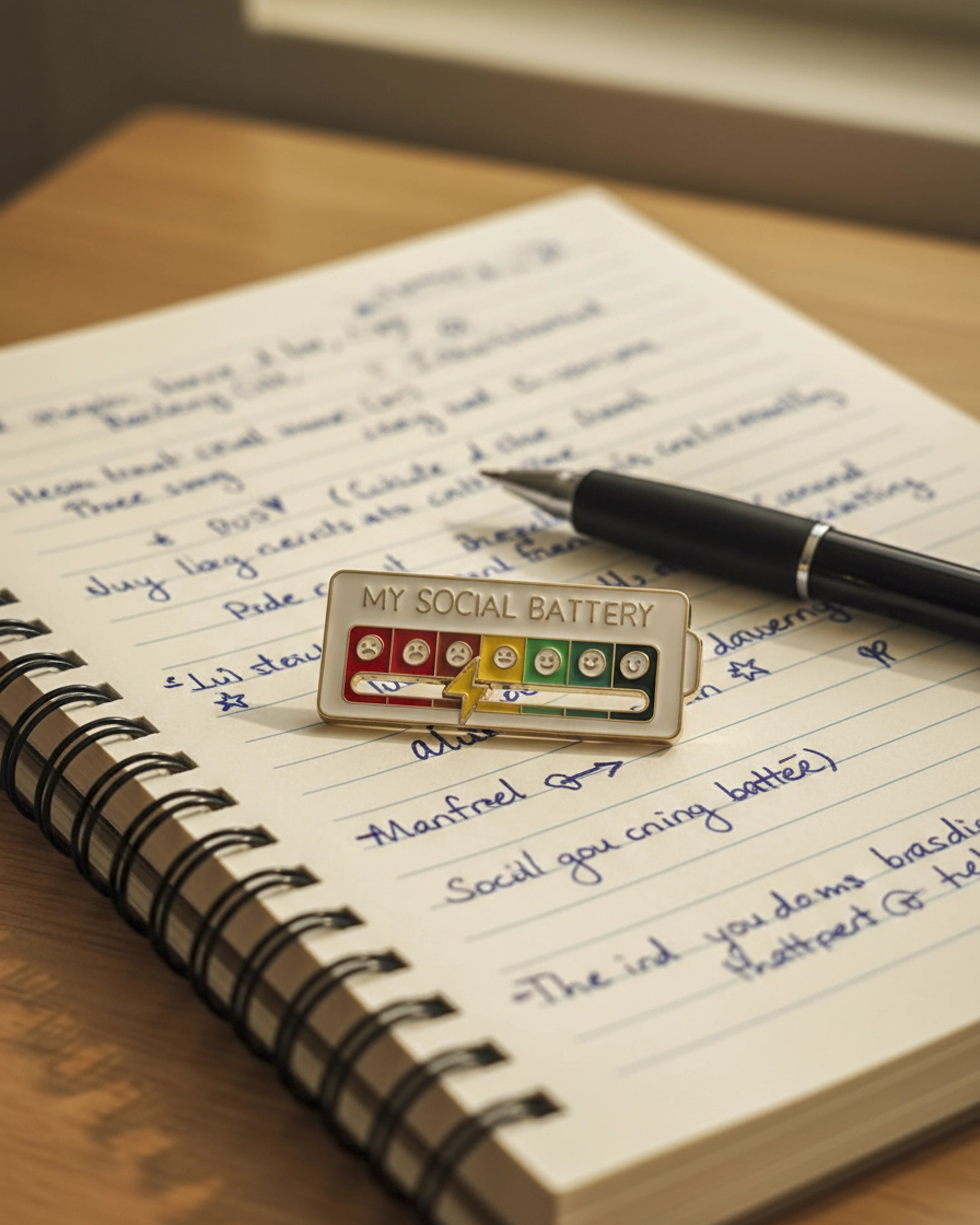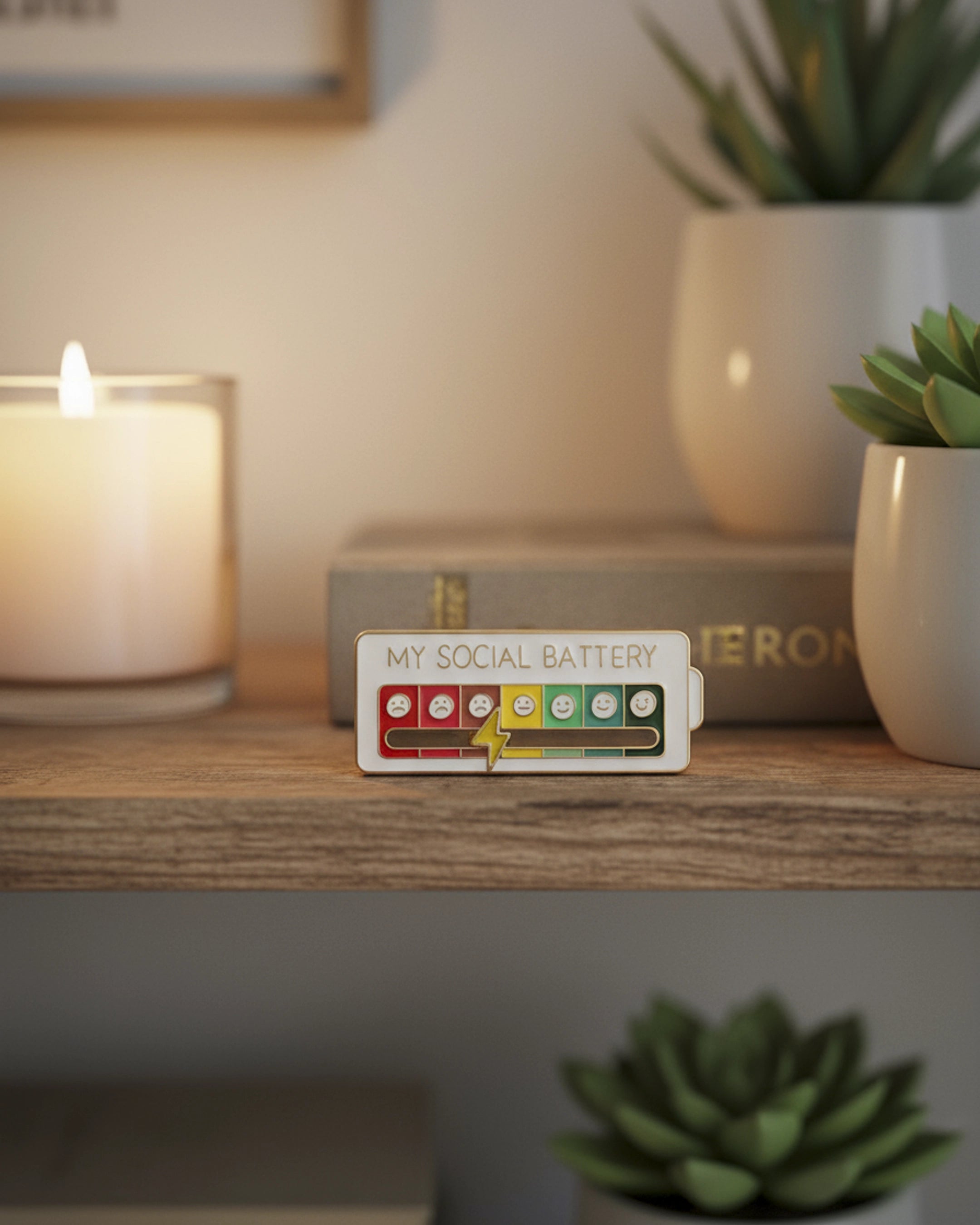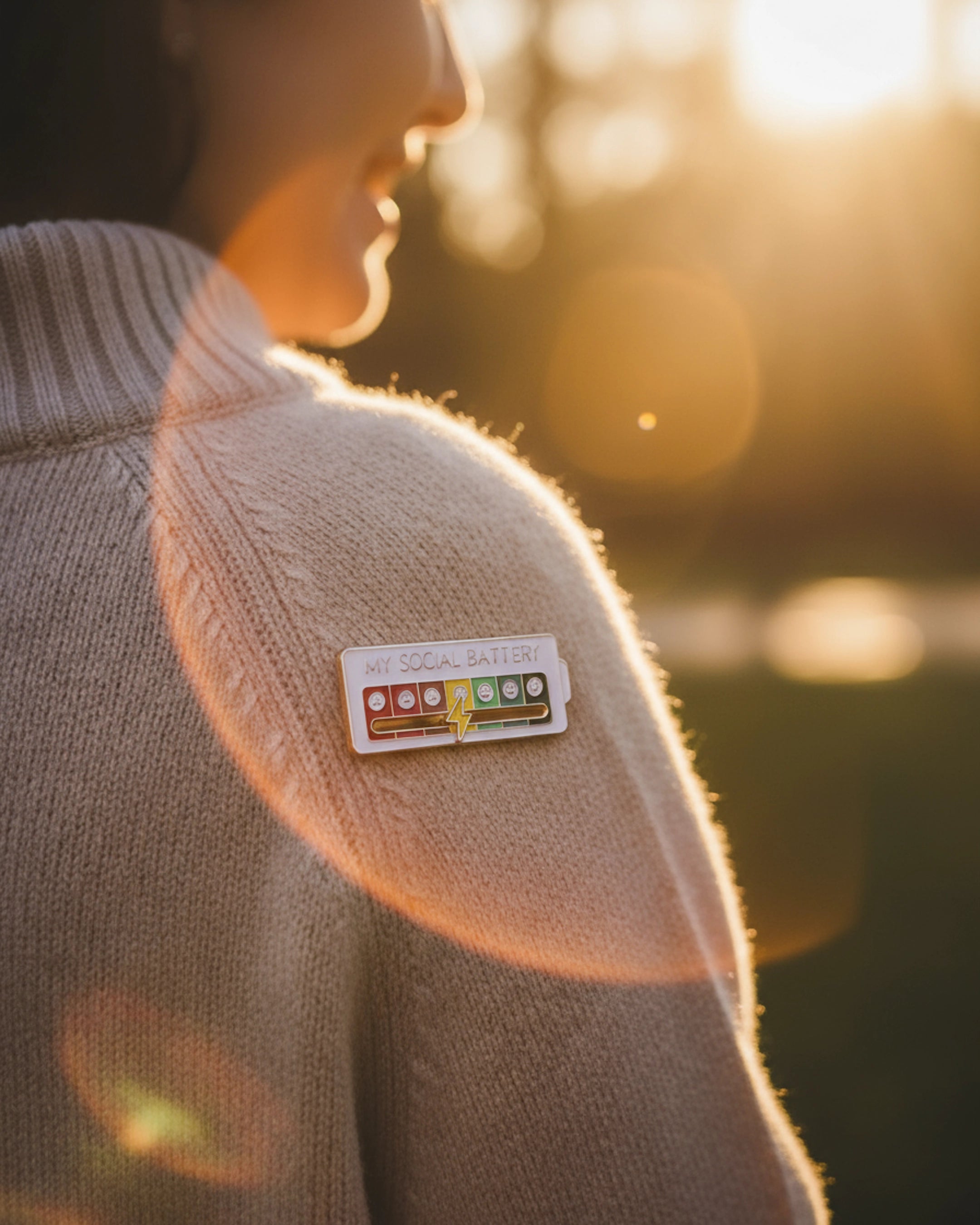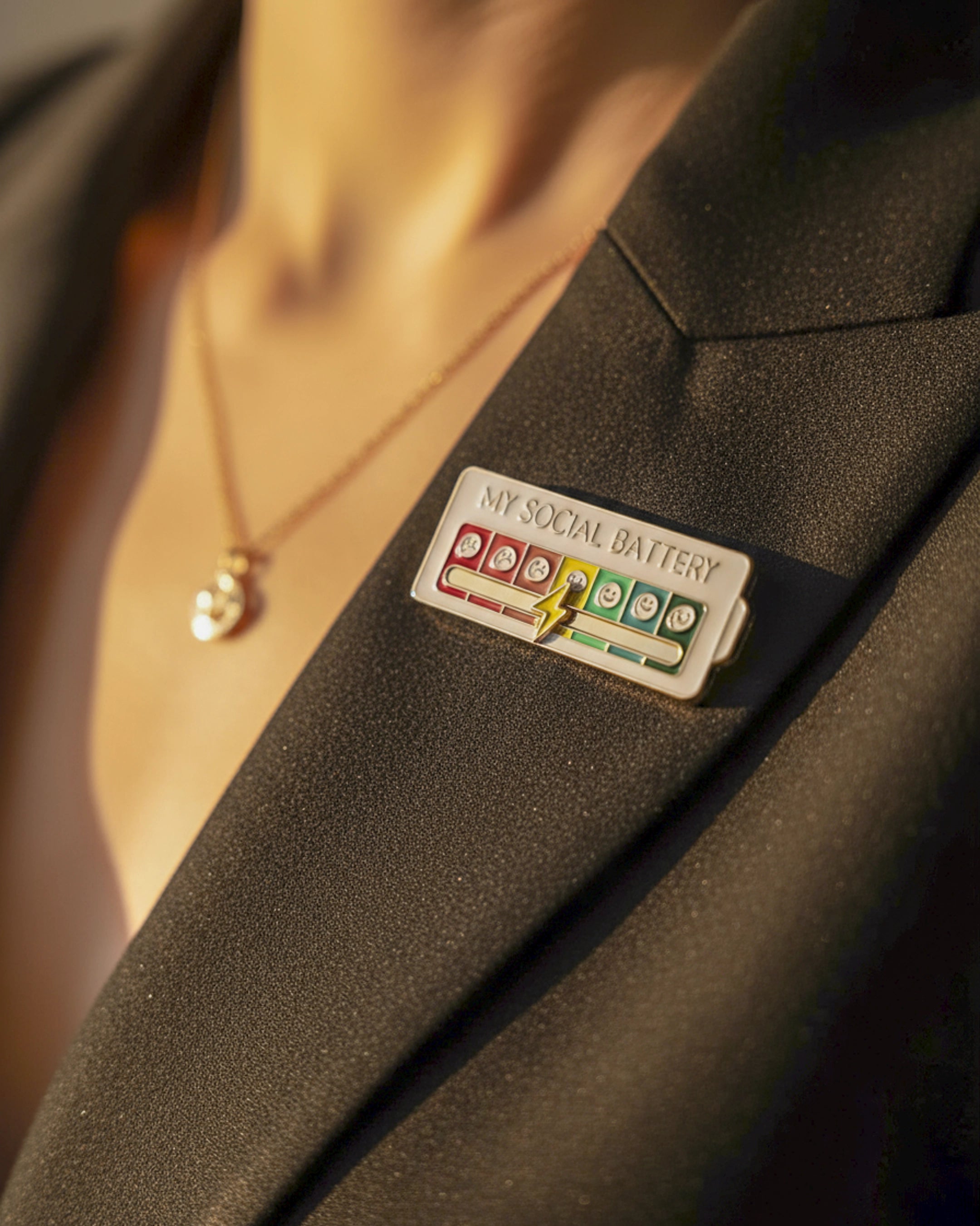 El Pin My Social Battery es una forma ingeniosa y lúdica de comunicar a los demás cómo te sientes en el ámbito social, sin necesidad de palabras.
