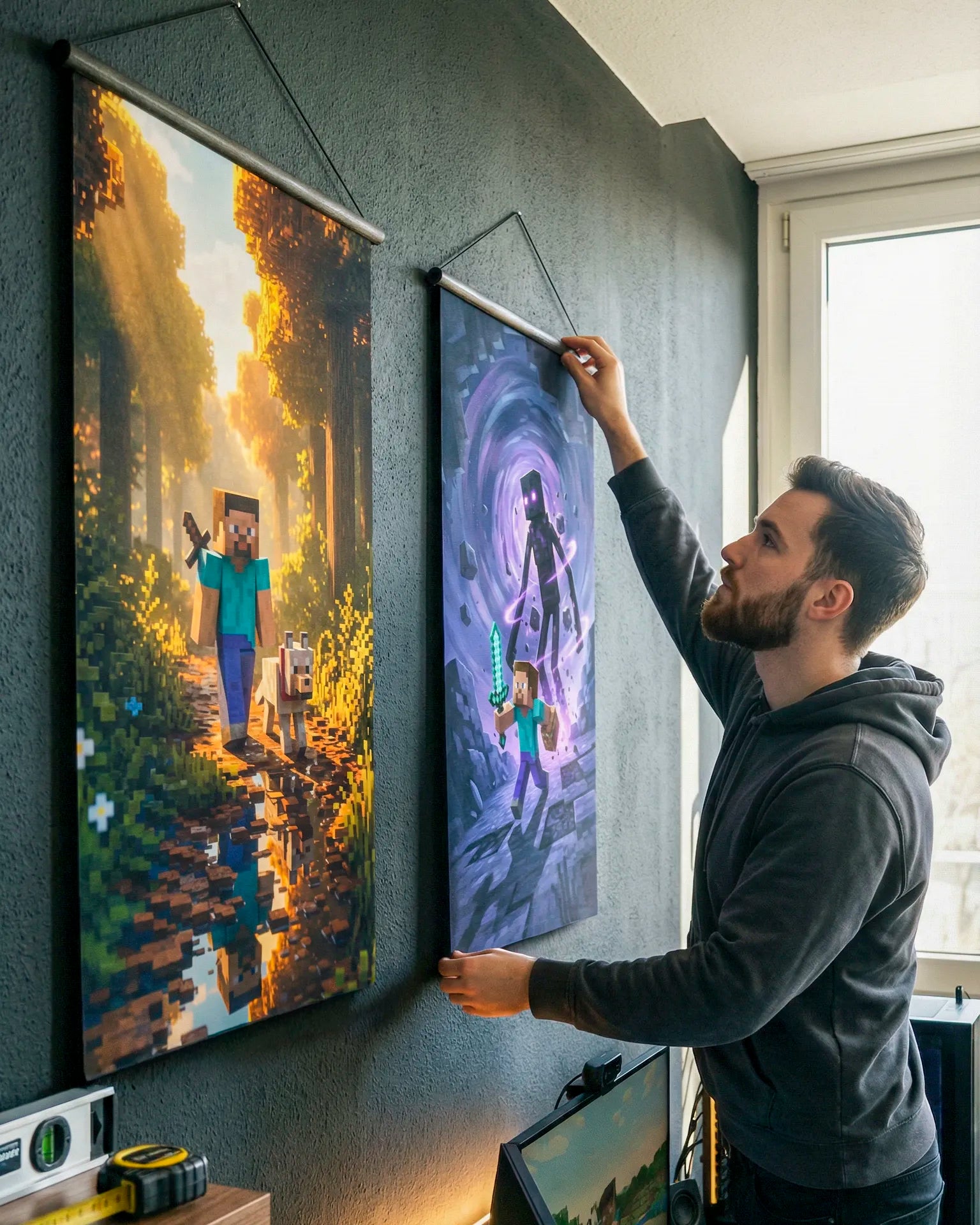 Pósters con el videojuego más famoso del mundo. Tu pared se convierte en un mundo de Minecraft épico.